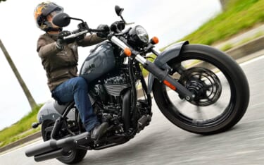 フラットトラックレーサー由来のフロント19インチホイールの車体に、12.0kg-m/5900rpmという強烈トルクを発生させる1203cc水冷エンジンを搭載。加えて853mmのシート高に大柄な車体と、[…]