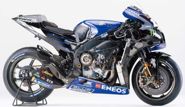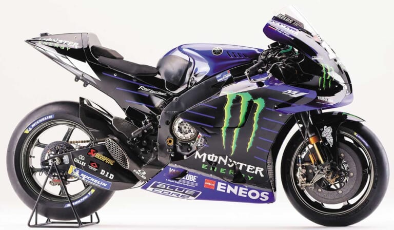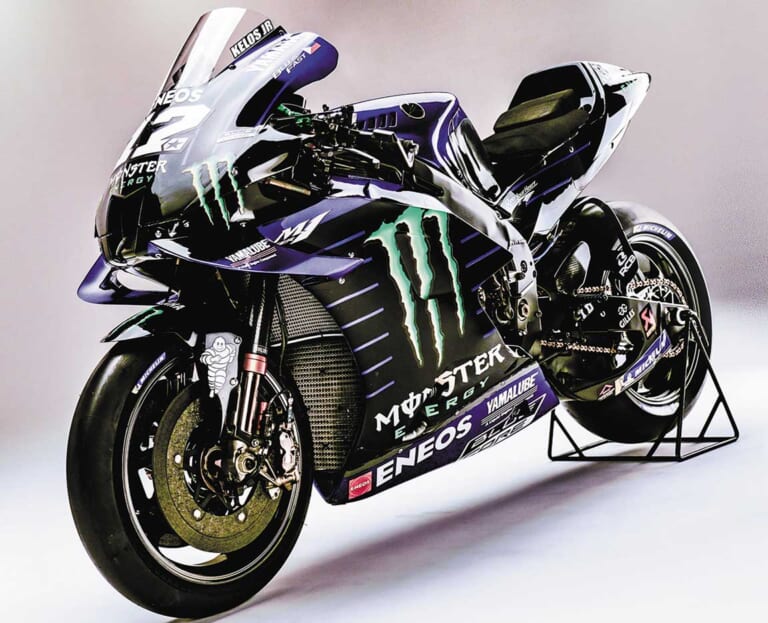 【’20 YAMAHA YZR-M1】性能・機能を最優先しながらも、ヤマハらしいデザインの美しさも感じさせる。各部をブラッシュアップして高いポテンシャルを備えながらも、不安定さにより王座を逃してしまった。