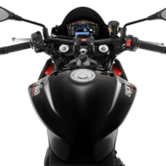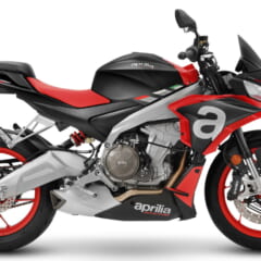 【2023 APRILIA TUONO 660 FACTORY】◼︎水冷4スト並列2気筒DOHC4バルブ 659cc 100ps/10500rpm 6.83kg-m/8500rpm ◼︎169kg(乾) シート高820mm 15L ◼︎タイヤF=120/70ZR17 R=180/55ZR17 ●色:ファクトリーダーク/トゥーファスト ●価格:156万2000円 ●ファクトリーダーク受注開始日:2022年4月25日 ※写真色はトゥーファスト