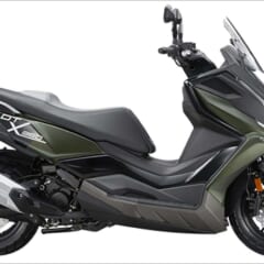 【'21 KYMCO DT X360】■水冷4スト単気筒SOHC4バルブ 320.64cc 28.8ps/7250rpm 5.4kg-m/5750rpm ■194kg シート高800mm 12.5L ■タイヤサイズF=120/80-14 R=150/70-13 ●色:ブラック×レッド グリーン ●発売時期:国内導入未定 ※諸元は海外仕様