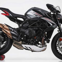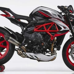 【'22 MV AGUSTA DRAGSTER RC SCS】■水冷4スト並列3気筒DOHC4バルブ 798cc 140ps/12300rpm 8.87kg-m/10250rpm ■168kg(レーシングキット装着時:160kg) シート高845mm 16.5L ■タイヤサイズF=120/70-ZR17 R=200/50-ZR17 ■クイックシフター(アップ&ダウン)/ブルートゥース ●色:アゴシルバー×グロッシーブラック×アゴレッド ●価格:341万円