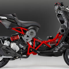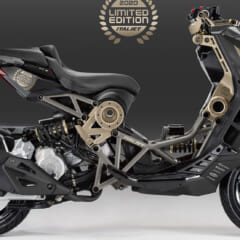 【'21 ITALJET DRAGSTER 200/125】■水冷4スト単気筒DOHC4バルブ 200[125]cc 19.8ps/8250rpm[14.9ps/10000rpm] 1.7kg-m/6250rpm[1.2kg-m/7750rpm] 112[108]kg(乾燥) シート高770mm 7L タイヤF=120-70-12R=140-60-13 ●価格:69万8000円[65万4500円] ※[ ]内は125