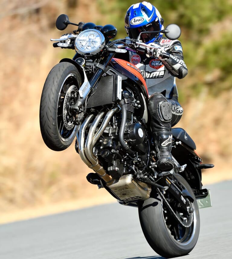 【動力性能は最新】姿はレトロでも中身は最新なので動力性能もバッチリ。トラクションコントロールを切ればウイリーも豪快にキメることができる。