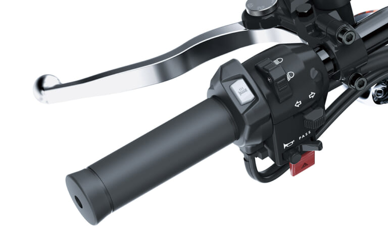 【グリップヒーター標準】外観はレトロでも機能は現代的に。グリップヒーターのほか、ETC2.0車載器も標準装備だ。