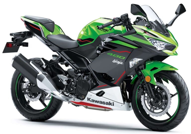【’21 KAWASAKI Ninja 400】■水冷4スト並列2気筒DOHC4バルブ 398cc 48ps/10000rpm 3.9kg-m/8000rpm ■167kg(装備) シート高785mm 14L ■タイヤF=110/70R17 R=150/60R17 ●価格:72万6000円