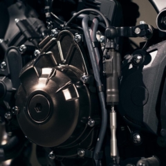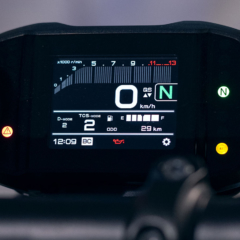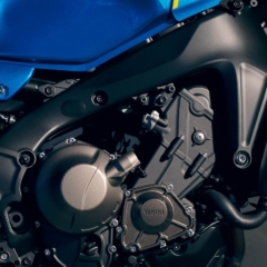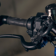 【操作系も一気進化】フロントブレーキのマスターシリンダーはMTのニッシン製ラジアルポンプ式から、ブレンボ製にグレードアップ。従来XSRは一般的な横押し式だった。クイックシフターも標準装備となった。