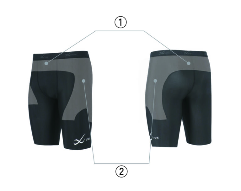 「CW-X」独自のテーピング原理を活用し、両脇から股関節を、前後から骨盤をサポート。股関節の安定性を向上させ、下半身の軸がブレにくくなるような構造を採用。タテ・ヨコ・ナナメの全方向均一に伸びる8WAYストレッチ素材を採用。