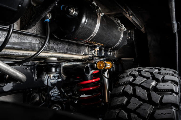 ちなみに、ポータルアクセルとは車軸の位置をホイールの中心よりも高い位置にオフセットさせ、高い位置にあるドライブシャフトの回転を低い位置にあるホイールに伝える仕組み。ハブリダクションとも呼ばれ、車体全体の車高を上げることなく障害物を乗り越えやすくするほか、ハブ内のギヤで減速を行うため、駆動トルクを大幅に高めるといったメリットがあります。