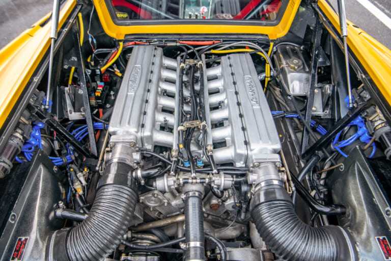 コンストラクションは工場内でSVの半完成車を1台ずつ仕上げるスタイルで、当時のランボルギーニにとってデフォルトとなる作業。それゆえ、34台を仕上げるのに2年ほど要しているとのこと。