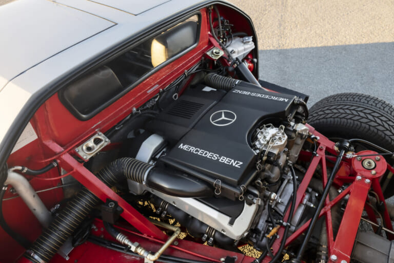 メルセデスベンツのM119、5リッターのV8ツインカムはおよそ300馬力といいますから、ほぼストックのまま。ミッションはZF製5MTを採用しています。