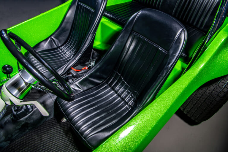 ですが、本家本元のマンクスはやはりレアであり、ご紹介しているフルレストア車ならば5~6万ドル(約780~940万円)と相場は高め。とはいえ、リペイント込みで修復されたボディや、懐かしいアメリカンレーシングのトルクスラストホイール、VWファンにはおなじみのEMPIトリガーシフターなど、ツボを押さえたレストアはとても魅力的です。