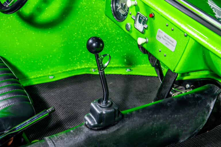 EMPI製のシフターもレストアの際に装備されたもの。ビートルのキャルルックや、ドラッグではおなじみのカスタムパーツ。