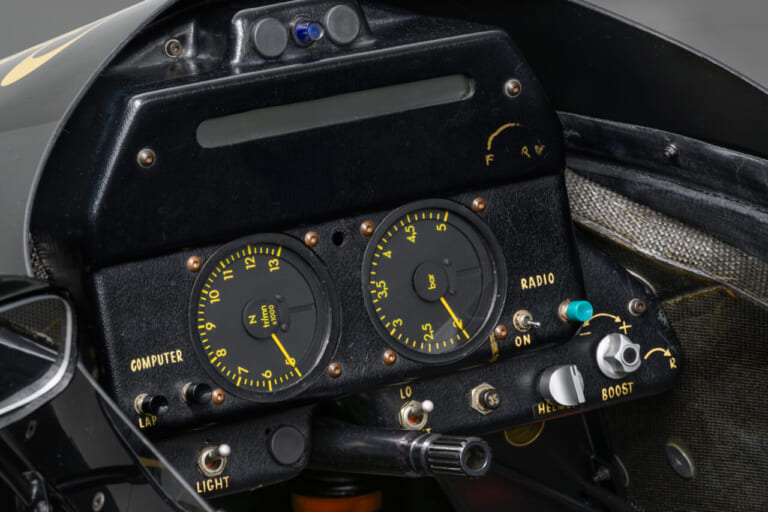 なお、レース本番においては900馬力ほどに抑えて耐久性を確保していたとのこと。ただし、98Tでは瞬間的なブーストアップが可能だったようで、コクピットに調整ダイヤルが残されています。