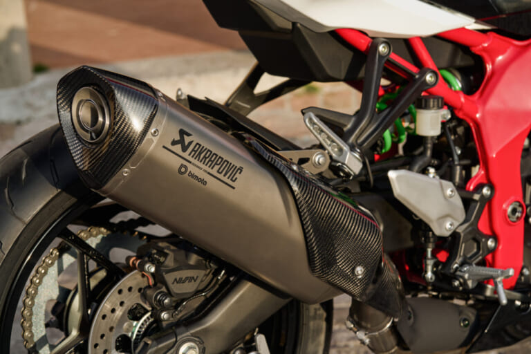シャーシは、サーキットユースを意識したバランスの取れたパッケージを採用。アルミ削り出しのトリプルクランプや、ブレンボ製Stylemaブレーキキャリパー、専用セッティングのショーワ製SFF-BPフロントフォークといった最高品質のパーツが投入されることで、正確で俊敏なハンドリングを可能としたという。