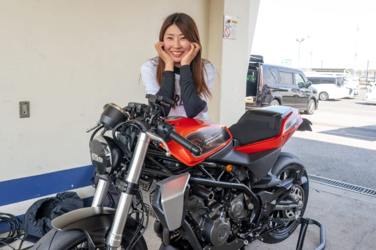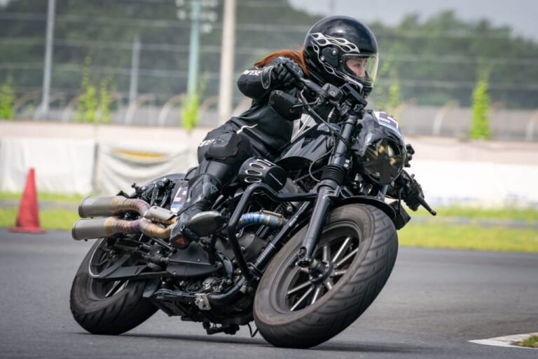 フルフェイスのヘルメットから長い髪をなびかせ、アグレッシブな前傾姿勢でサーキットを駆け抜ける。豪快にスロットルを開け、足りない荷重を効果的にかけようと、マシン上で目一杯に身体を上下左右に動かす。昨今、バイク女子やハーレー女子という言葉がメディアやSNSで目につくが、正真正銘そんな女性ライダーがここにいる。寝ても覚めてもライディングのことばかり。キャリアなんて関係ない。さぁ、夢叶えてサーキットでひと暴れだ! MCFAJのロードレースに出場した!!
